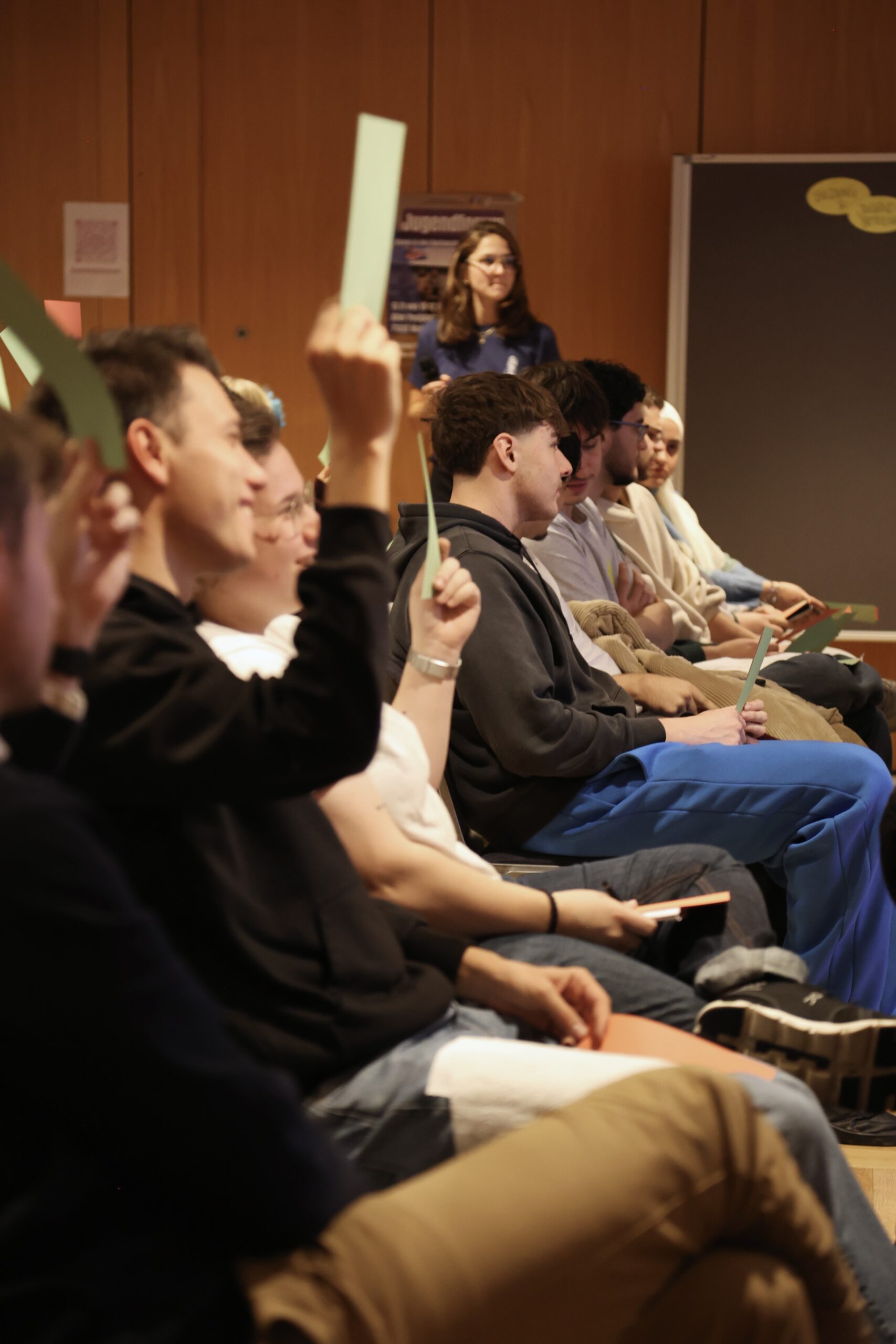 Bei den „Was uns bewegt“-Formaten arbeiten wir mit sogenannten Orga-Teams. Im Orga-Team sind Jugendliche, die sich ehrenamtlich engagieren und mit denen wir unsere Formate vorbereiten und durchführen. Hierfür finden zwei bis drei Vorbereitungstreffen vor den Formaten statt. Die Jugendlichen werden in organisatorische Entscheidungsprozesse einbezogen und übernehmen gezielt Aufgabenbereiche.